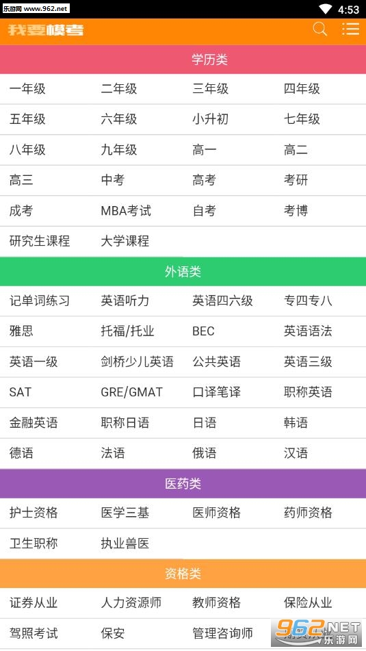 2.分类十分详细,根据一个总的标签进行分类,不管是学业考试还是职业考试这里都有;