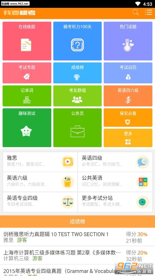 《我要模考网app》是一款最大在线模拟考试网站,能给我用户提供英语,数学等各个学科的模拟考试练习,免费习题,学习资料的下载,还能为你在线答疑,和其他的小伙伴互动分享,让你轻松进行备考,有效提升考试复习的效率,让考试变得更加轻松容易,需要就来下载吧!