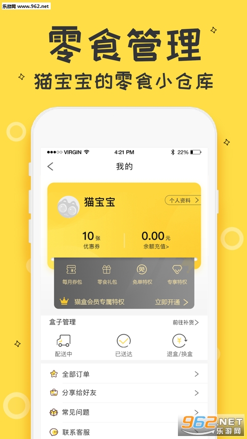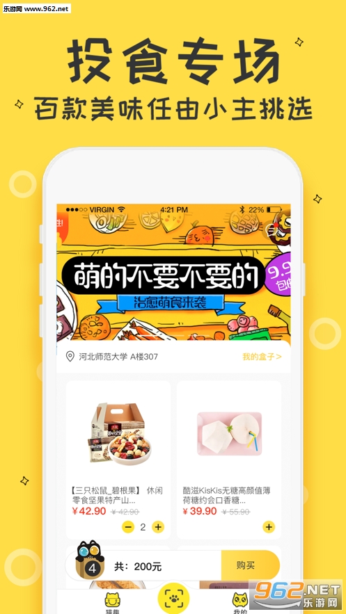 《猫盒app》是一款为大学生提供零食购物的app,学生可以购买各种零食,上百款小零食专为学生提供,价格实惠哦。