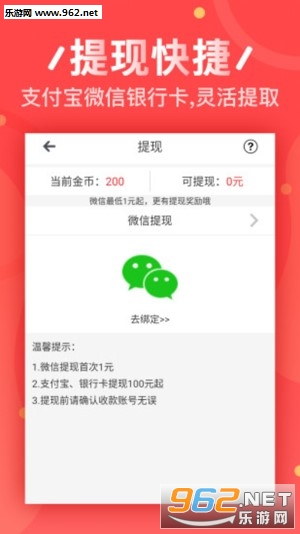 3、首次满3元提现秒到账,之后满10元提现