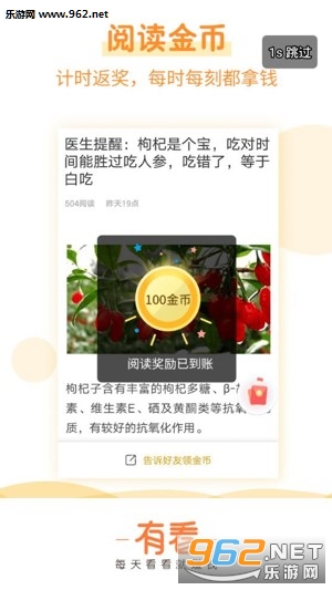 《有看》是一款十分实用的网赚软件,每天都会更新海量的新闻资讯,内容丰富任你看,只要阅读就可以获得现金奖励,赚钱就是如此轻松,邀请好友来参与还能赚更多哦!有需要的朋友赶紧来下载吧!