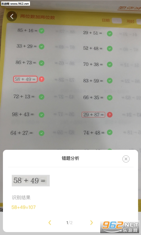 口算检查:支持小学口算绝大多数题型,手机轻松一拍,就能找到做错的题目。