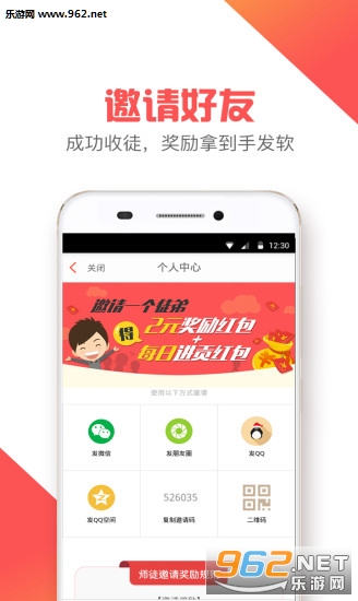 【邀请好友】人人都玩,领取现金红包,注册就拿3~10元现金奖励,每收一个徒弟即可额外获得6.5现金,合理利用碎片化时间让每一刻的时间都是有价值的。