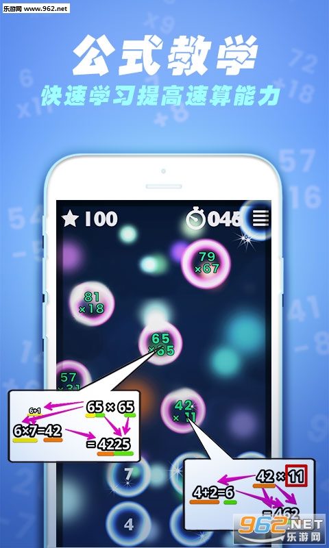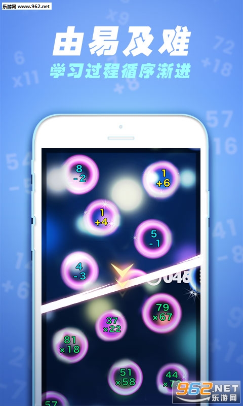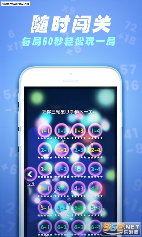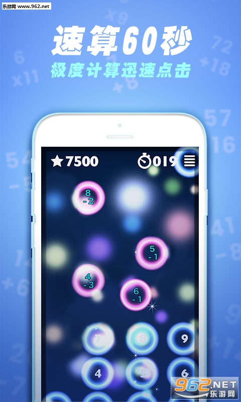 一款适用于全年龄段的数学教育软件。优秀的数学计算学习软件,用户需要快捷计算出气泡中的算式结果,并通过点击消除气泡,在60秒钟获取更高的分数。