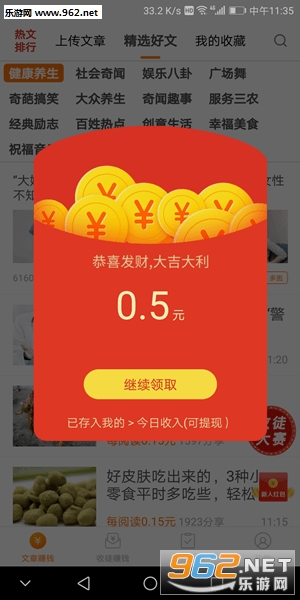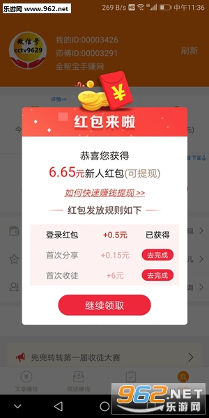1、急转旗下,收益及提现稳定,文章点击单价0.15元,注册得6.65元红包(其中0.5元登陆即得)