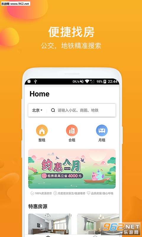 北京、上海、广州、深圳、杭州、天津、武汉、南京、成都、苏州10城同享优惠!每月“租立减、再返现”等优惠房源倾情奉献,在App即可筛选房源,联系房管家等服务!