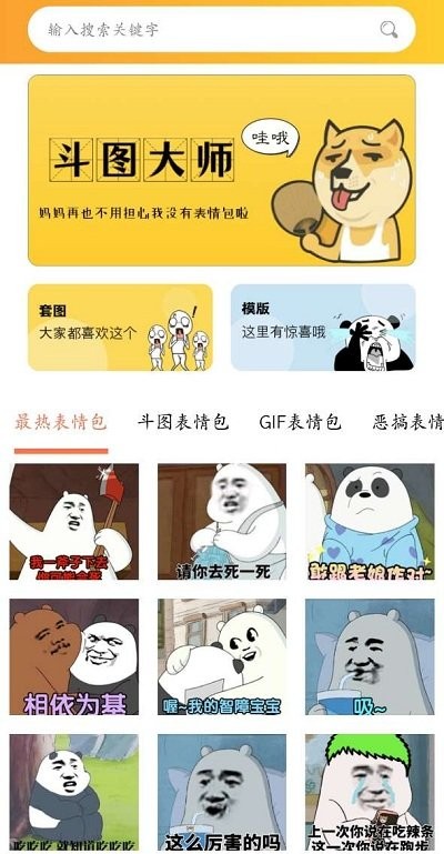 斗图P图神器是款非常有意思的p图软件,上面有海量的表情包可以下载使用,还可以自己制作各种各样有趣的表情包,再也不用担心和别人聊天没有表情包了,喜欢的小伙伴快来下载使用吧!