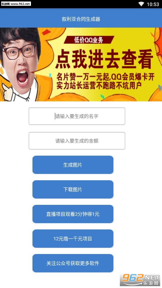 《叙利亚合同生成器app》是一款非常魔性的手机恶搞神器,最近叙利亚暑期工梗大火,很多小伙伴都在朋友圈晒叙利亚雇佣兵合同图片,叙利亚暑期工搞笑图片等等用来装逼,操作简单,只需要输入姓名和金额就能生成当前最火的叙利亚合同图片,不要错过哦!