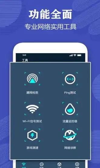 测网速专家,为wifi网络提速,支持Wi-Fi,2G,3G,4G,DSL和ADSL网络的网速测量.实时网络安全检测,为您安全上网2265保驾护航.是便捷的网络测速大师!