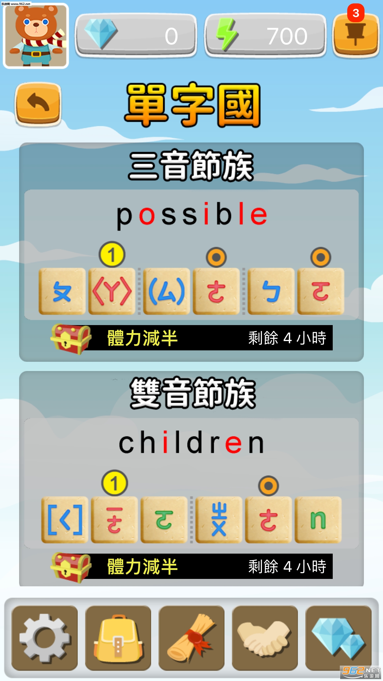 语言学习首重声音本身,先把听力、记忆掌握,再学习文字,可事半功倍!拼音熊游戏共有三个国度,熟练拼音熊音标系统,不必出国不必找老外也能玩出标准美语!