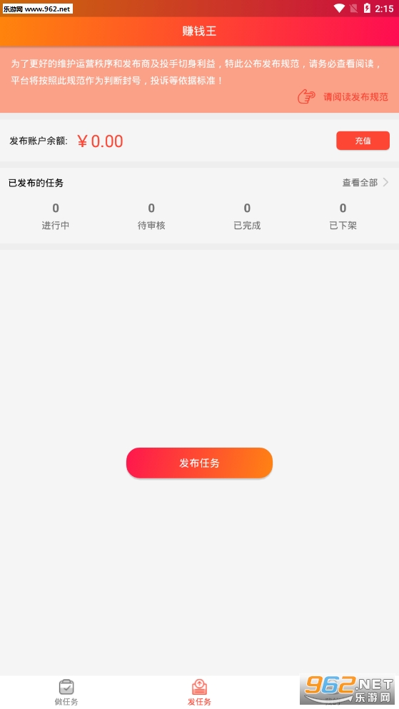赚钱王是一个在线即可做兼职赚钱的软件。如果你想发布任务,也可通过本平台悬赏发布自己的任务,无论你是学生还是正式工作人员,只要打开这款应用即可随时随地赚钱额外收入,本平台对每一个用户信誉做了严格审核,保证兼职者权益,找兼职就用赚钱王,放置任何违背信誉问题,信誉品质服务,让您生活更美好!