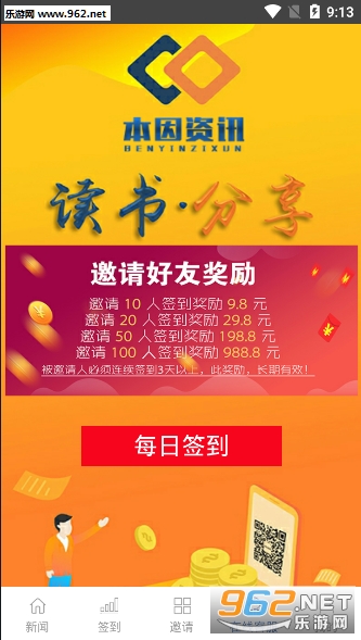 每天阅读本因资讯app热点资讯就能赚取收益哦,还能丰富知识