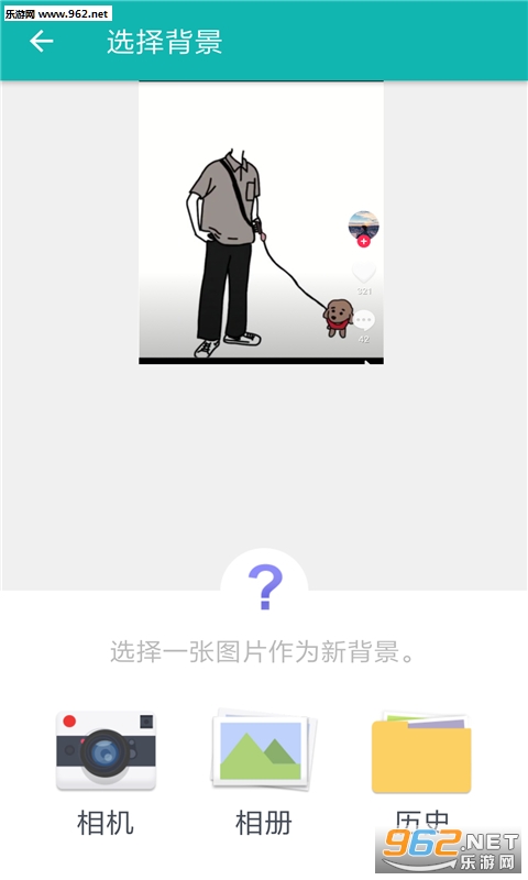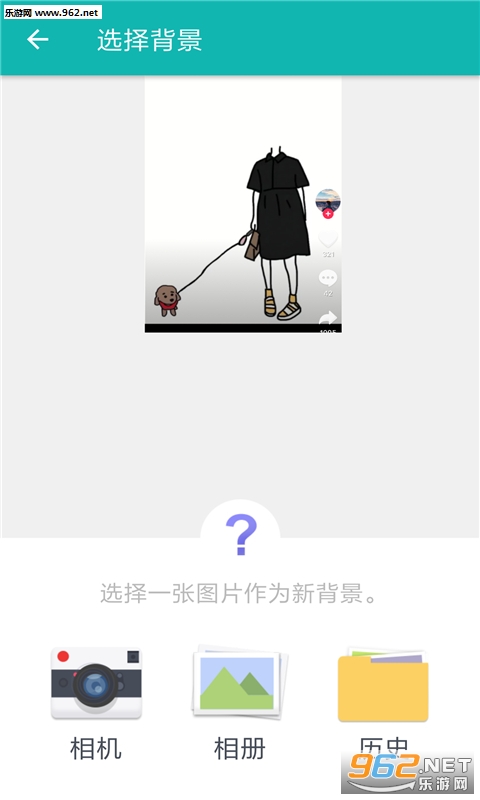 3.用相机,相册,历史,选择另一张照片作为新背景;