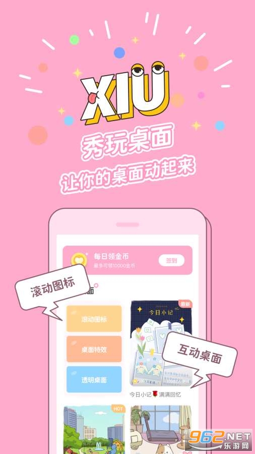 秀玩互动桌面app是一款由重庆奇燎科技有限公司准备的手机个性化互动桌面设置软件,让你的手机桌面动起来,互动式新颖玩法,超多不同风格的桌面供你选择,还有滚动图标,手指点击桌面可以看到好看的特效,喜欢的可以下载秀玩互动桌面app使用!