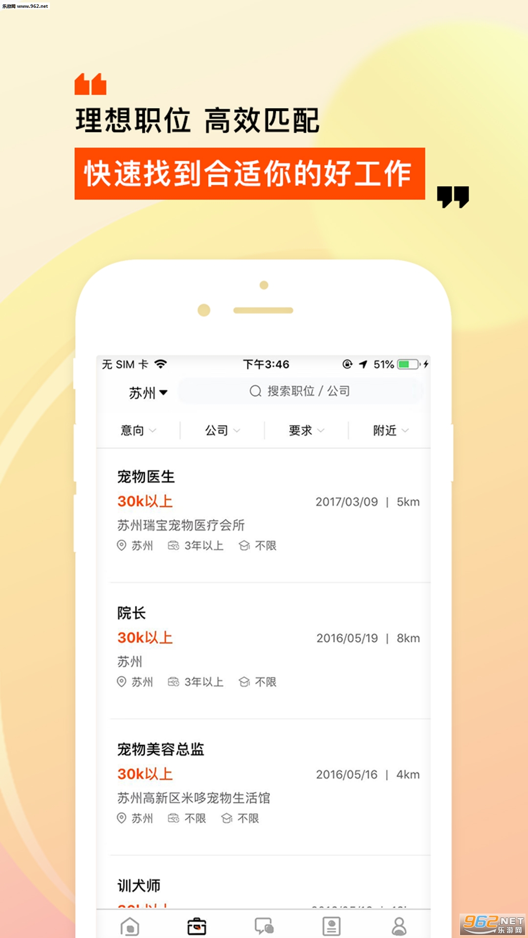 实用的手机招聘软件,有着海量的招聘信息可以在线查看,适合众多不同的职业,注册登录,制作自己的简历,投入自己想要的工作即可,有需要的朋友可以下载试试。