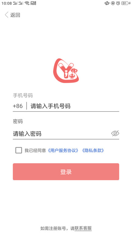 2、于登录页输入手机号与密码,勾选协议后完成账户登录。