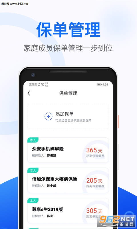 2、保单管理,家庭成员保单管理一步到位