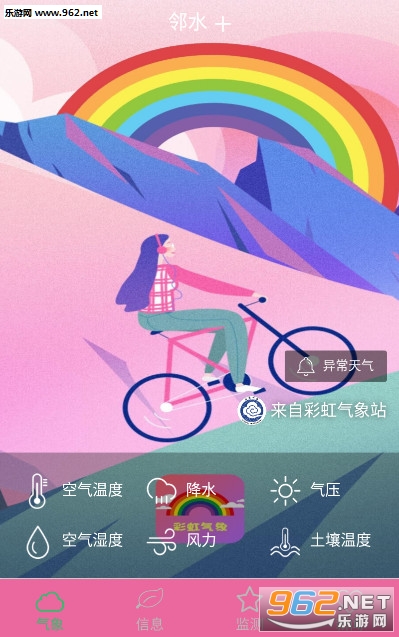 《彩虹气象》是一款预报天气的暖心软件,在预报极端天气的同时还可以提示您的穿衣搭配。同时对于农业大户,气象局工作人员等与气象息息相关的职业的人群来说,这款app可以有针对性的给出农事指导,气象信息等内容,可以说是天气预报类软件中不可多得的精品了。