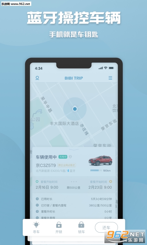 BIBI TRIP拥有急速注册、分时计费、寻车寻航等功能,为您营造自由出行生活。