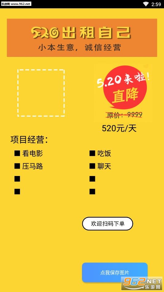 非常火的出租自己的海报,本软件可以帮你生成520出租自己的广告,
