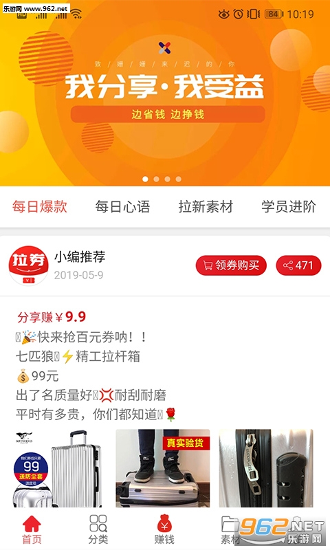 拉券APP,一款方便网购达人购物生活的省钱工具,涵盖服装、百货、美妆、鞋包、生鲜等应有尽有,一款专注于高性价比商品的导购平台,海量大额优惠券每日更新,让您会购物,惠生活...