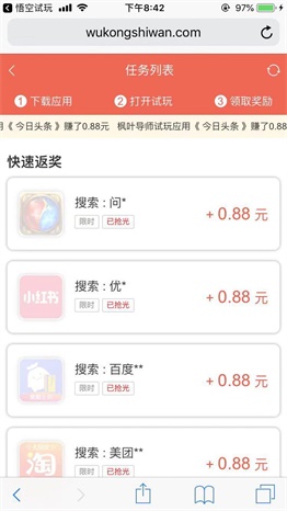 2、试玩赚钱任务单价0.88元起