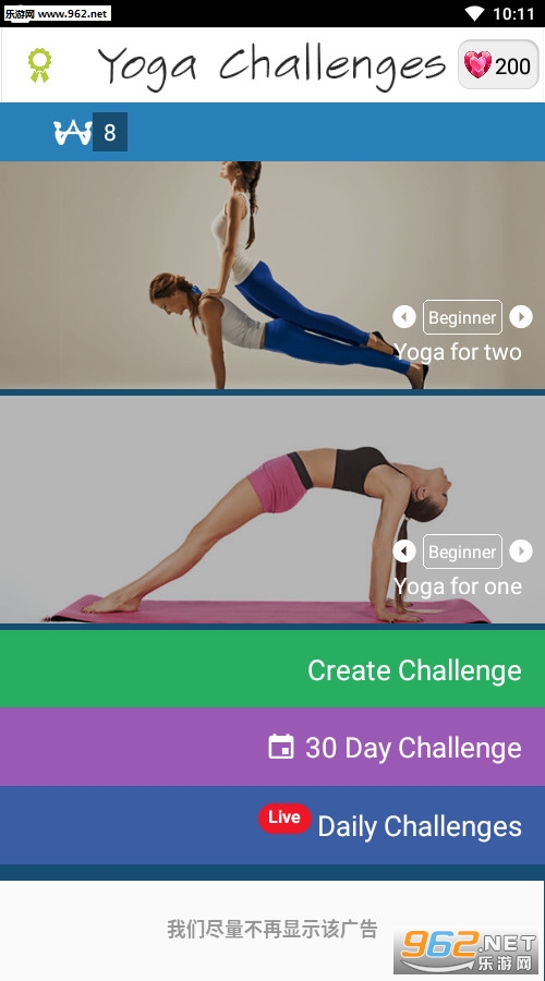 这个应用程序功能齐全,包含许多功能,增加了乐趣。有两个困难,两个人的瑜伽挑战可以单独完成或与朋友合作完成。你可以解锁像头像和背景这样的大奖。
