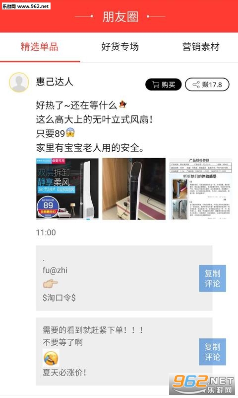 一键转发宣传素材,轻松复制评论分享商品,购物途中也能赚钱。