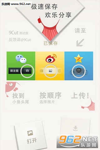 9Cut是一款把照片裁切成9块来上传后拼贴为1张大图的应用。用它你就可以告别只发布1张小缩略图而得到9张拼成的夺人眼球的震撼大图啦,实乃刷屏利器!