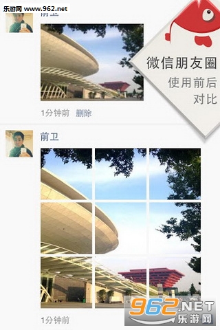 “从截图看得出,这个app能帮我把1张大图切成9张小图,这样我就能在朋友圈、新浪或QQ空间上上传这9张小图拼成1张9宫大图啦!”