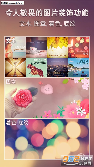 带有100多种字体的文字功能、可以表达不同情绪的多达500种的贴纸和相框、绘画、马赛克、照片剪贴、Instagram正方形