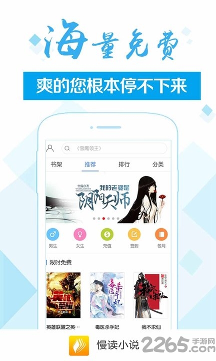 慢读小说app是一款专业性的手机阅读软件,该软件汇集了海量的小说资源,不仅是名著实体小说,还有网络小说等.让用户轻松免费阅读,并且还分门别类的整理,方便用户更好的浏览,打造最好的阅读体验.感兴趣的朋友可以来2265安卓网下载.