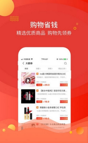 一款既能省钱又能赚钱的手机购物服务软件,该软件为用户提供了大量好的折扣优惠券,用户在线可领取购物,便宜又实惠,同时分享还能赚钱,需要的用户快来下载吧。