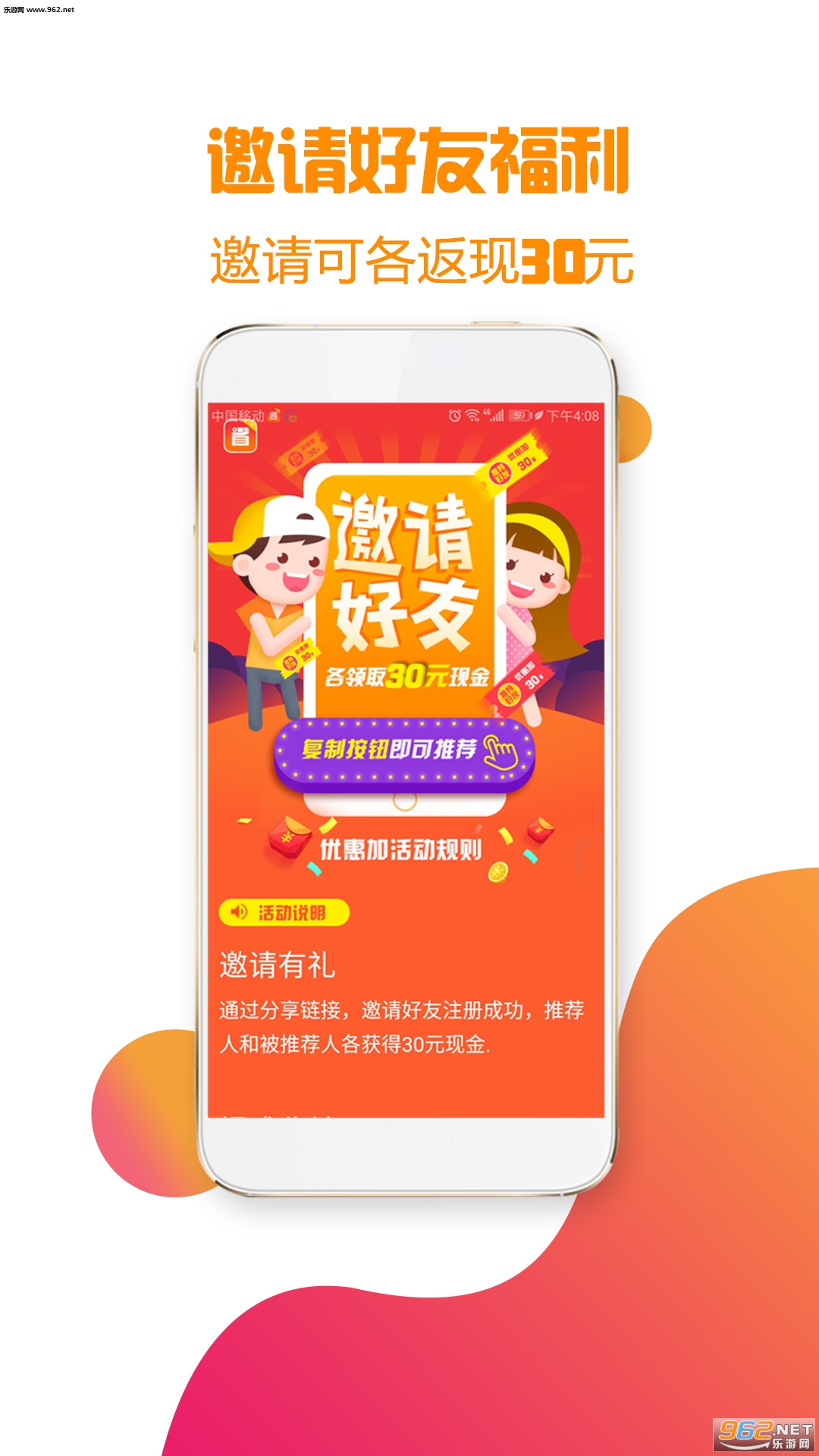 1、邀请好友福利,邀请可各返现金30元,更多赚大钱的机会都在这里等待着你。