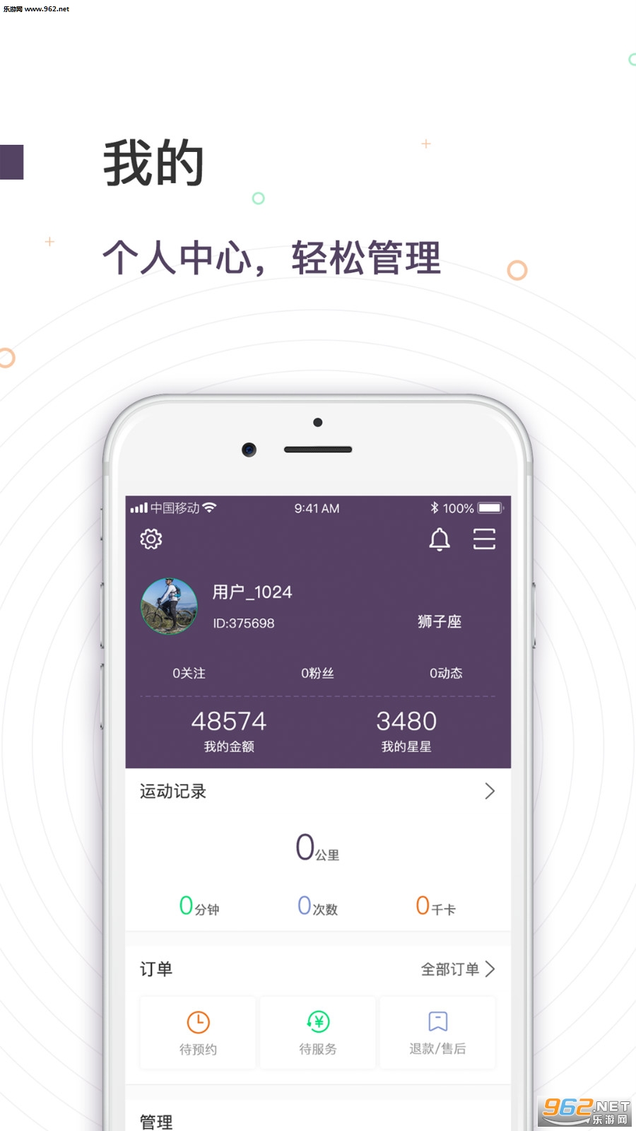 【个人中心】 管理自己的信息,记录查看自己的运动记录和身体记录,实时查看个人的订单信息。