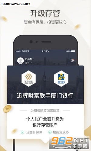 迅辉财富手机版是一款为高收入人群提供投资理财的手机软件。自创立以来,迅辉财富始终坚持规范运作、稳健经营,以多元化的资产管理工具和创新模式服务于高净值客户,并在其类固收增值咨询服务、家庭保障、财富传承等方面迅辉财富逐渐形成了自己独特的核心竞争力。