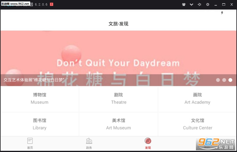 发现版块主要包括轮播推荐、文化场馆、文化圈子、读物、名家、雅集、艺见、非遗、新文创等栏目,着力打造专业的业内信息服务平台。