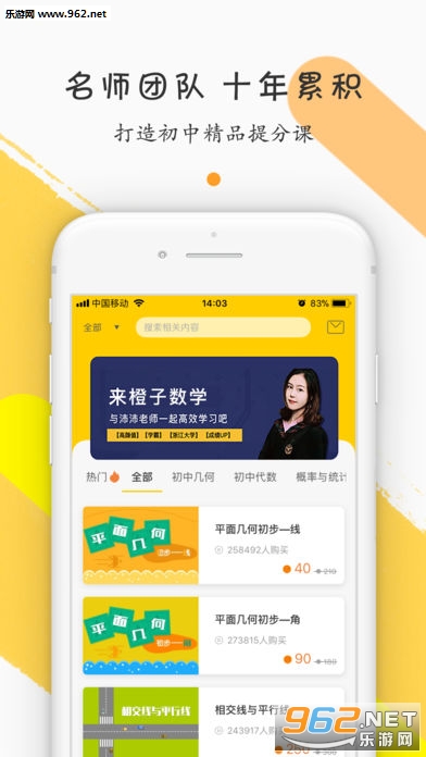 橙子数学初中版涵盖了初一,初二,初三数学学科各版本课本考试知识点。