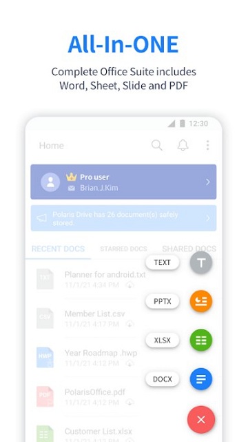 Polaris Office免费 下载手机版是适用于办公室的完整全面的办公软件,免费的移动办公套件;简约而精致的用户界面,文档的加载速度很快,兼容性很强,处理的速度特别快,大大能够提高用户的工作效率,有有需要的小伙伴们一定不要错过了,快来下载使用吧!