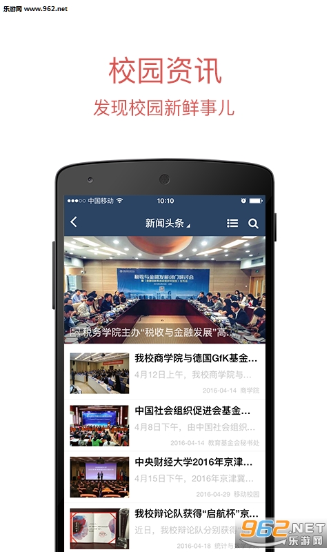 《移动中财大安卓版》是一款非常好用的校园服务软件,软件专为中央财经大学学子和教师设计,在这里,你可以随时随地发现校园新鲜事,查询各种自己想要了解的信息,还可以与校友在线互动交流,尽享智慧校园生活。欢迎同学们下载使用!