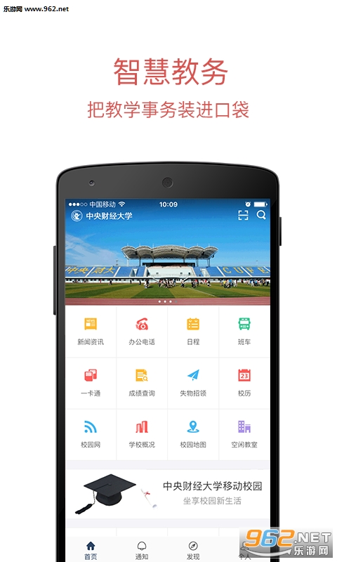 软件利用学校数据中心的资源优势,结合校内各门户网站、管理系统、教学科研协作应用平台内容,打破信息壁垒、实现数据共享、便捷师生查询、助力教学科研,为中财师生提供一站式的智慧校园移动服务。
