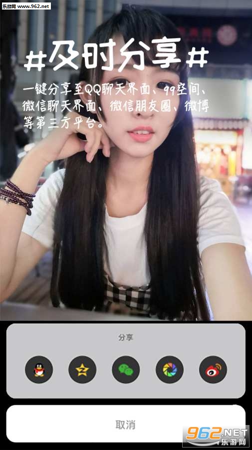 5、及时分享:一键分享至qq聊天界面、qq空间、聊天界面、朋友圈、等第三方平台。
