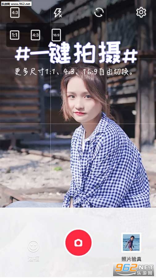 1、一键拍摄:更多尺寸1:1、4:3、16:9自由切换。