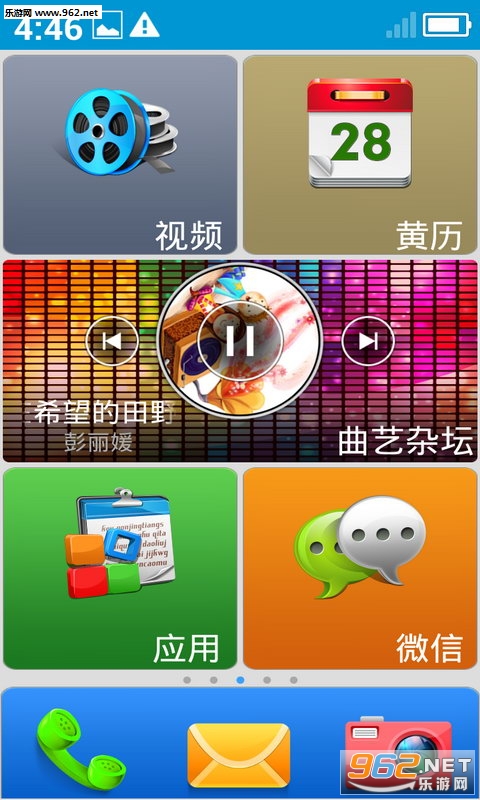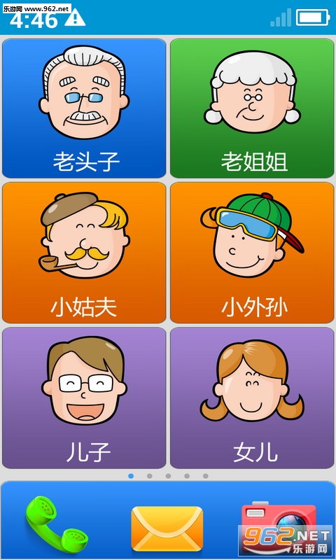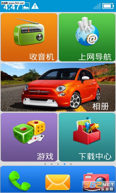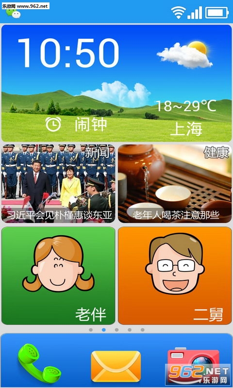 专为爸妈设计的桌面,大字体、大图标,大色块,无论短信、通讯录一律超大,让爸妈扔掉老花镜。
