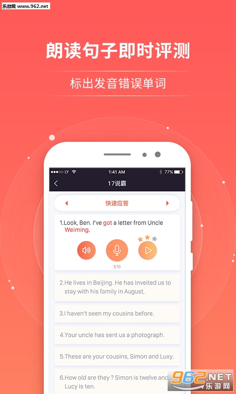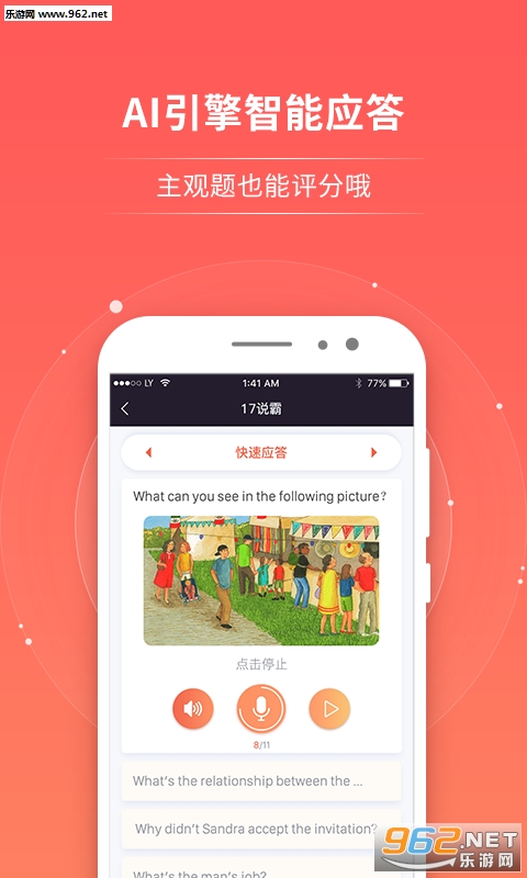 《17说霸app》是一款充分利用自然语言处理(NLP)技术和语义自学习分析技术,基于大数据机器学习训练,针对中高考口语的交互情景式训练系统。为广大中小学生提供在线英语的单词朗读,练习发音,句子的跟读练习,提高学生的英语口语能力。