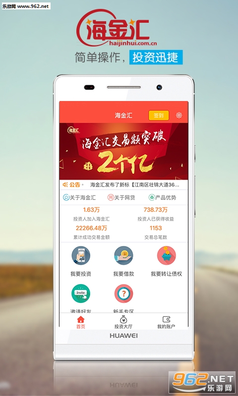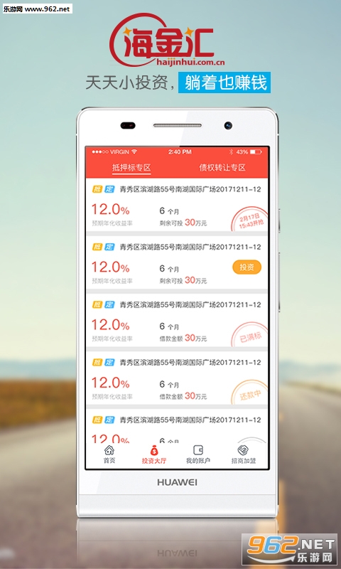 海金汇平台上线啦!海金汇隶属于广西富溢海电子商务股份有限公司。海金汇专注于实物抵押物借款项目,预期年化收益为9.6%~12%,为有理财需求的社会大众提供高效便捷、真实透明化的可靠的投资项目。更安全,更靠谱。你还在等什么?
