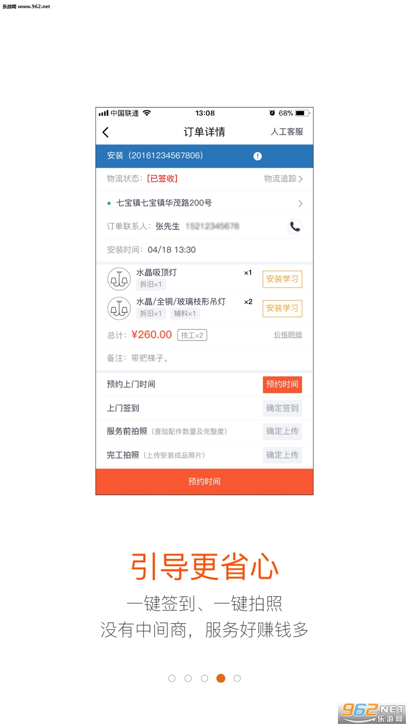 用户可以通过互联网在平台进行下单,匹配师傅接单上门安装服务。