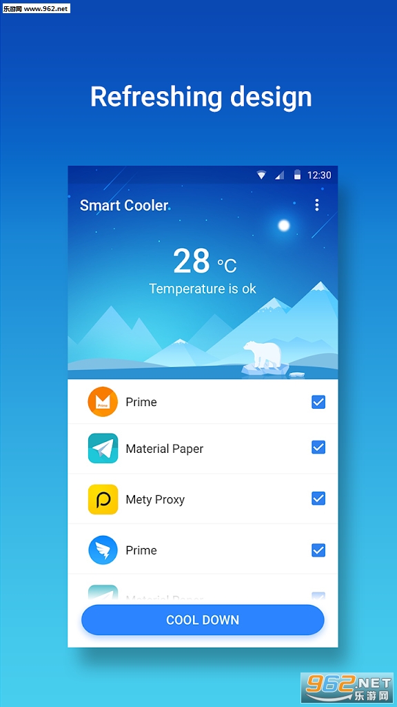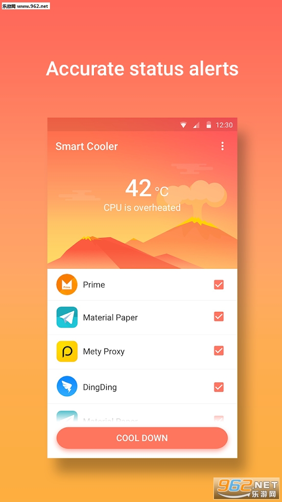 《Smart Cooler安卓版》是一款手机温度检测器,这款软件可以帮你实时监测你的手机cpu的温度,智能为你的cou降温冷却,控制cpu的温度不会太高,还会降低的利用率,不需要启动的软件一键帮助你轻松关闭,避免卡顿,拖慢速度等问题。