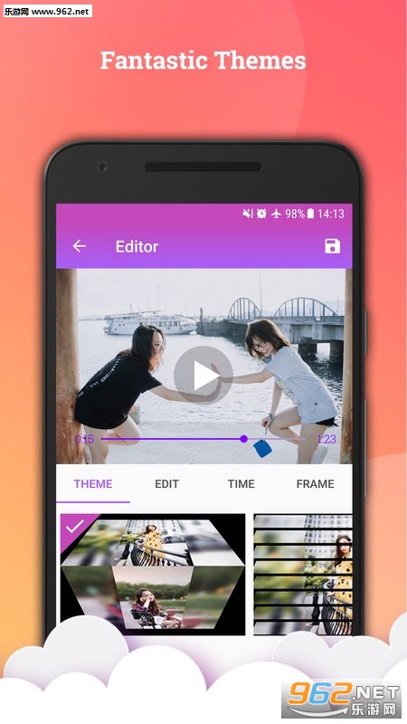 您可以轻松创建视频,编辑您自己的照片集中的视频,您需要做的只是选择照片,添加音乐,选择主题,框架。这是您存储和分享图片的最佳选择,记录与朋友亲戚的美好回忆!