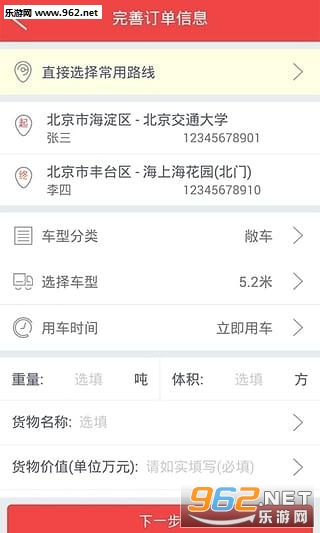 【轻松接货】点击符合需求的信息进入详情页,一键点击直接拨号联系;